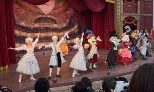 パレードの最中でも、動いてるフロートの上から、一緒に写真撮影に応じてくれるチョッキー。