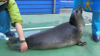 ゴマフアザラシトレーニングによる全頭採血制覇!を目指し、残るはルン太君のみ!。でもまだ0歳だし~っとのんびり練習してたら、ルン太君の落ち着きようにもしかしたら …