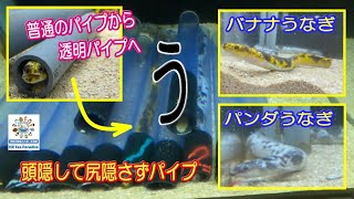 2022年9月20日現在、伊勢シーパラダイスで暮らしているパンダ柄とバナナ柄のニホンウナギたち(*´з`) 色素異変で体表の色が通常 …