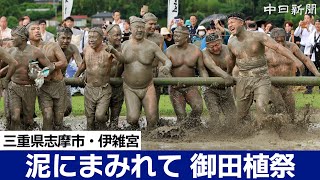 三重県志摩市磯部町の伊雑宮の御料田で6月24日、国重要無形民俗文化財の御田植祭が営まれた。早乙女らが苗を植える御田植 … 関連ツイート